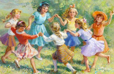 Qualche tempo fa Daniela ha pubblicato su facebook una serie di immagini con bambini che fanno il girotondo e questo mi fatto venire l'idea: il logo del nostro clan rappresenta, appunto, un bel girotondo disegnato da Mariapia; perchè non parlarne e cogliere l'occasione per mettere insieme un po' di belle illustrazioni? detto, fatto!